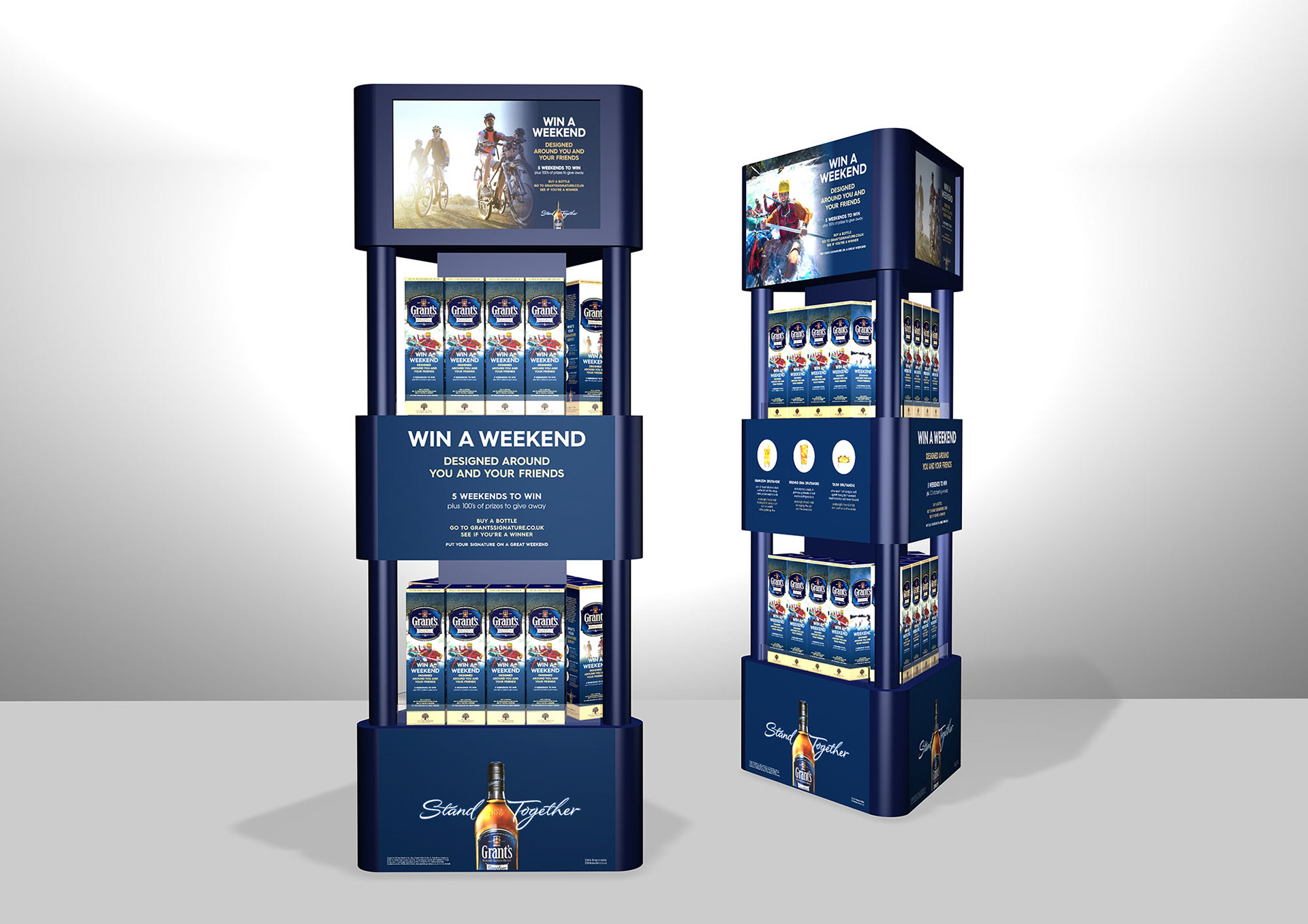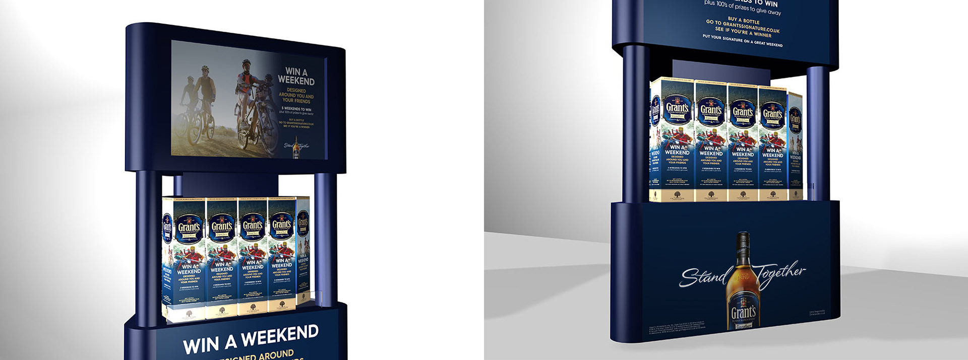 This project involved creating five up-weighted FSDUs for Tesco stores, as they had to be in-store for six months, they were made of highly finished wood and metal tubing. The top of the unit also incorporated a monitor showing a campaign film.